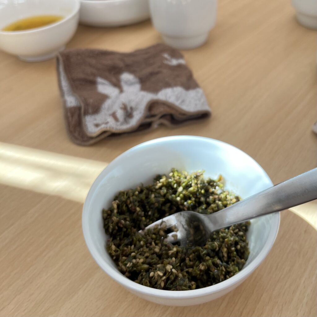 今回は、ふっくらと実ったシソの実を、ひとつひとつ丁寧に摘み取りました。