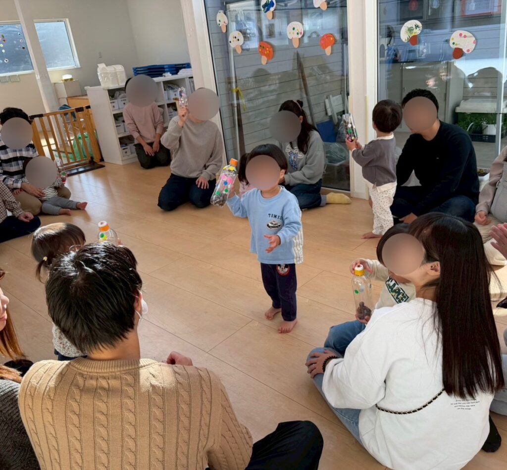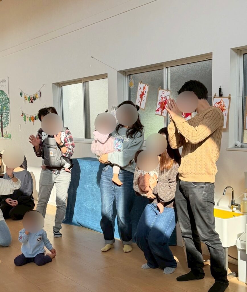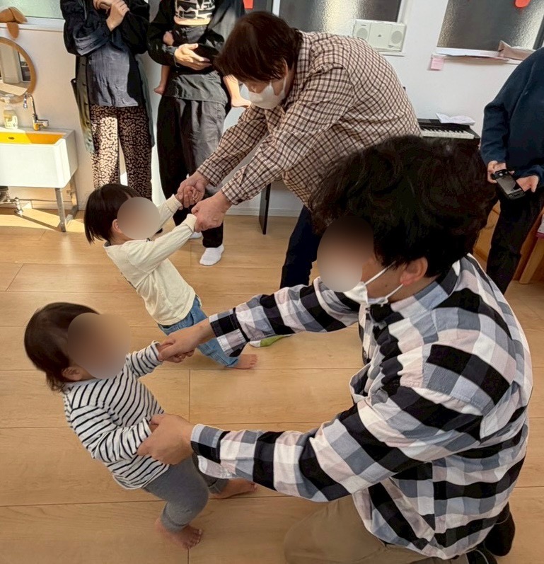 「こうやるんだよ」と嬉しそうに踊ったり、お家の人手を繋いだりして楽しんでいてこどもたちも嬉しそうでしたよ。