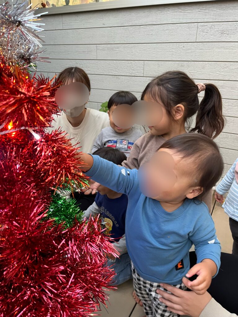 大きなツリーに、保育園が一気にクリスマスの雰囲気に包まれ、こどもたちの心にも〝特別な季節がきたんだ〟という期待がぐっと高まったようでした。