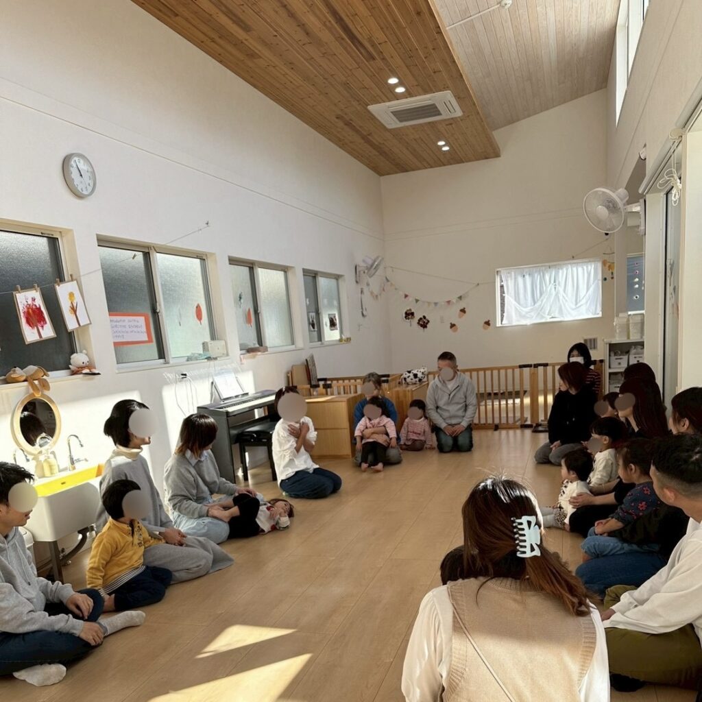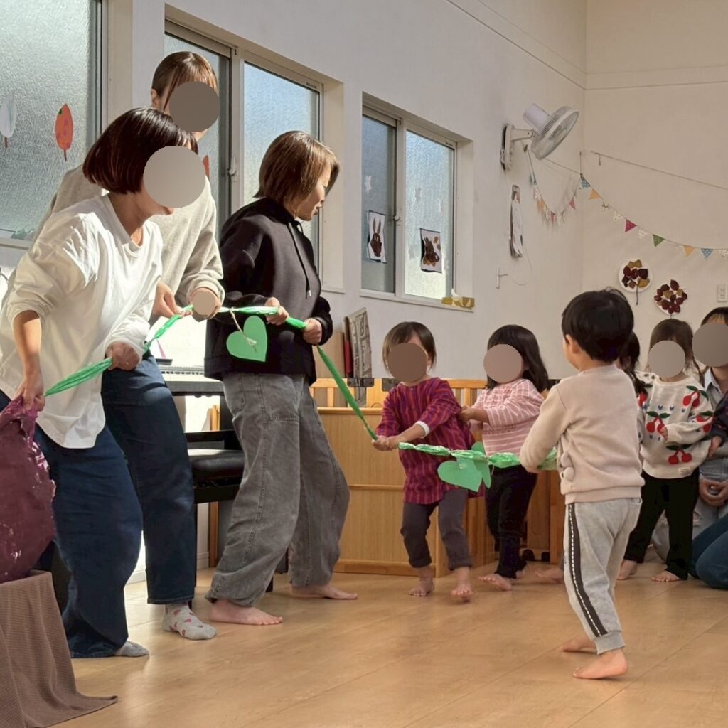 2歳児(たんぽぽチーム)さんは、こどもたちが日頃楽しんでいるあそびを、お家の人と一緒に楽しみました。