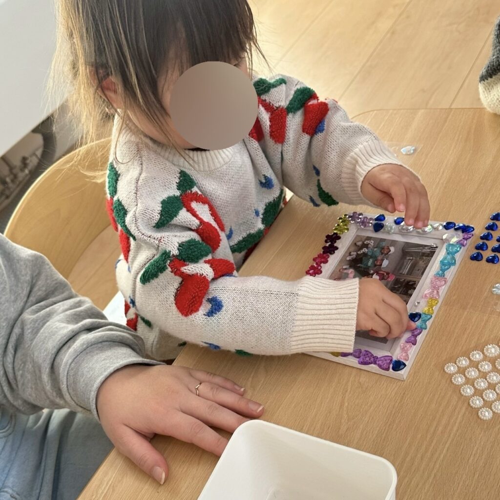 うたあそびの後は、親子でフォトフレーム作りをしました。