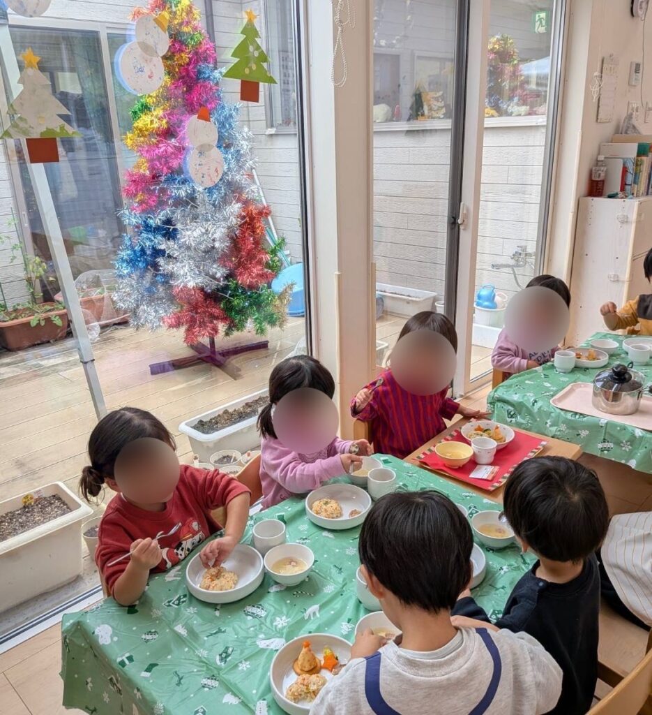 クリスマスツリーの形のポテトサラダや星形のにんじんなどこどもたちも大喜びでした。