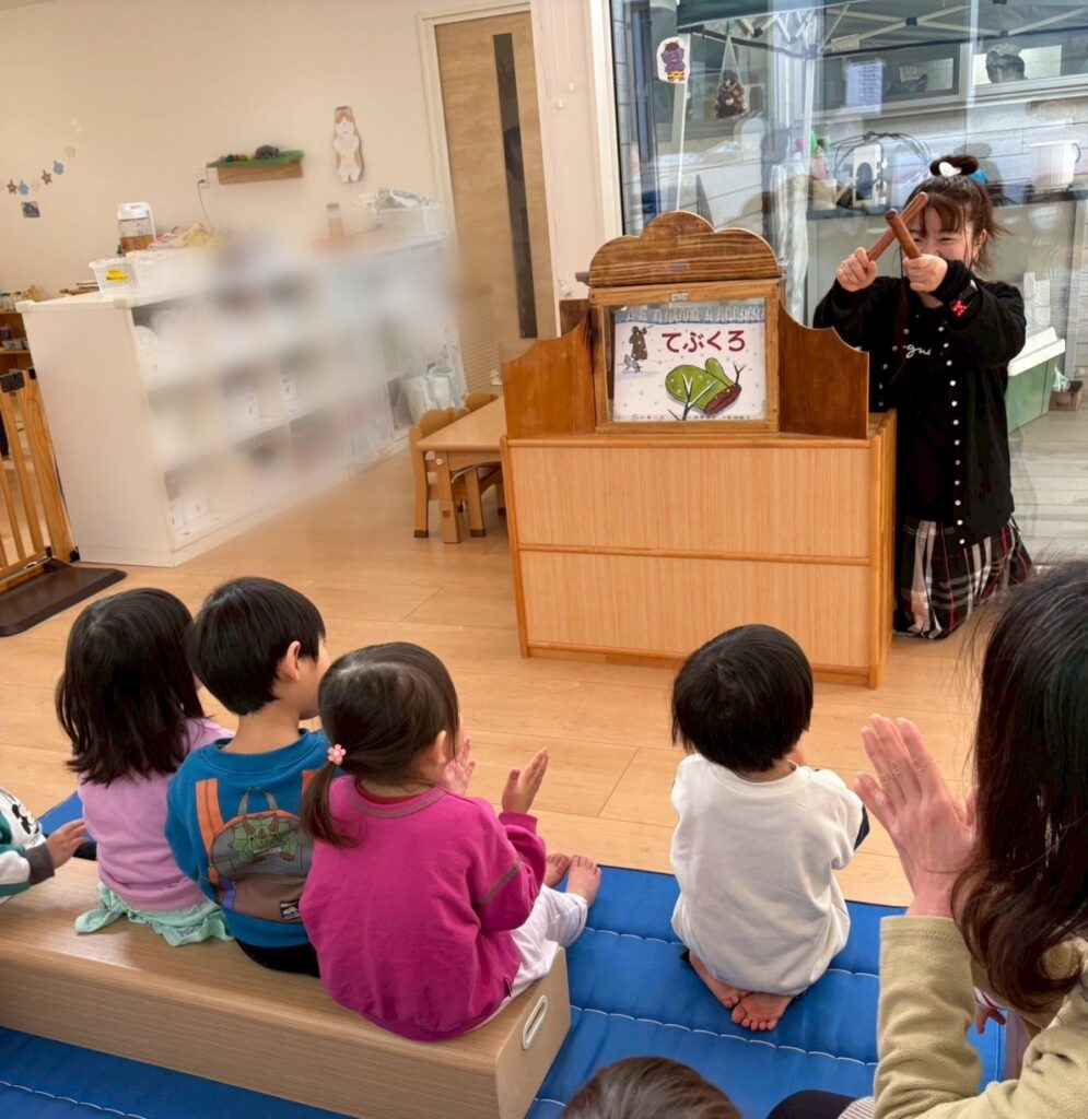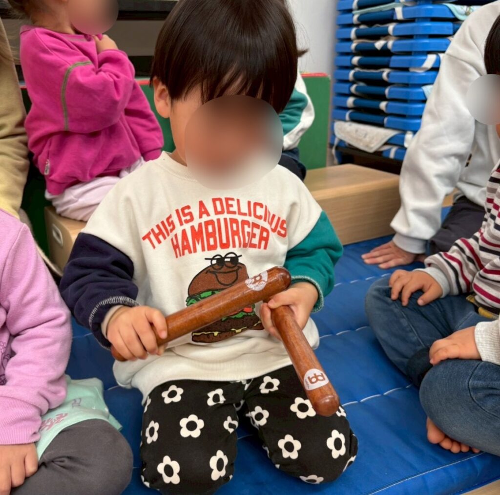 紙芝居が始まる時にトトロさんが鳴らしていた木製の楽器を、こどもたちも鳴らしてあそびましたよ♪