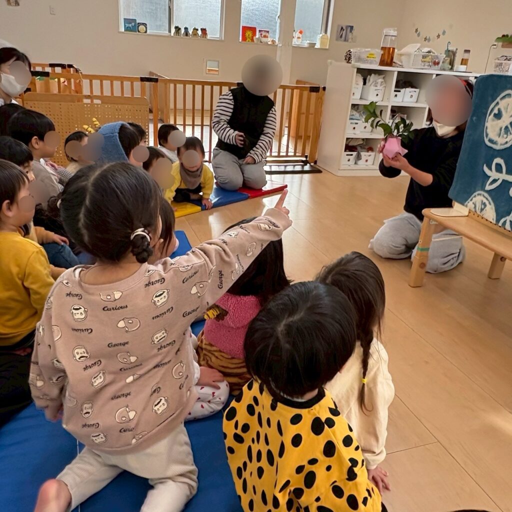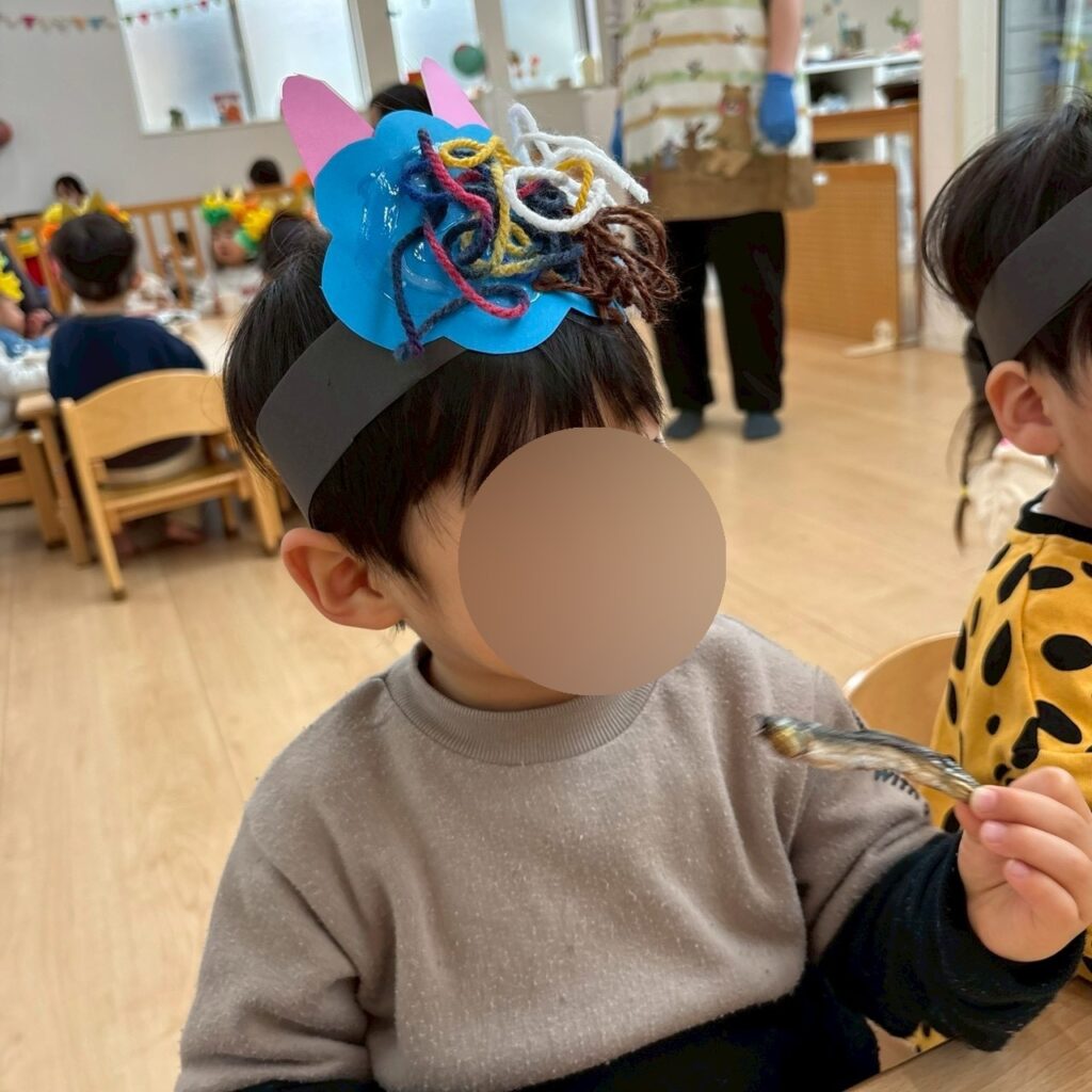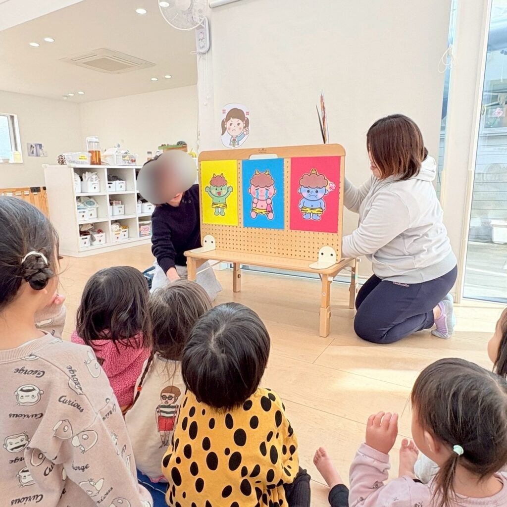 節分のお話を聞いた後は、歌をうたったりペープサートを見たりして楽しみました。
