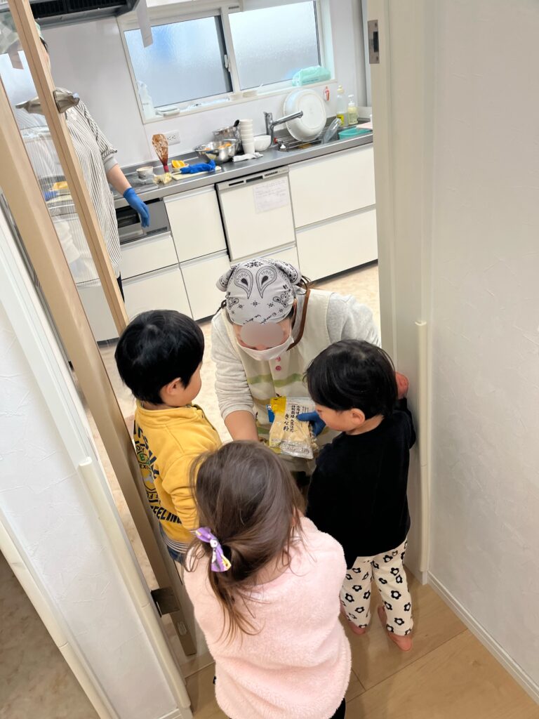 給食室のTちゃんに、おつかいを頼まれたこどもたち。