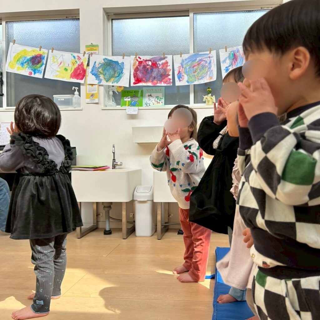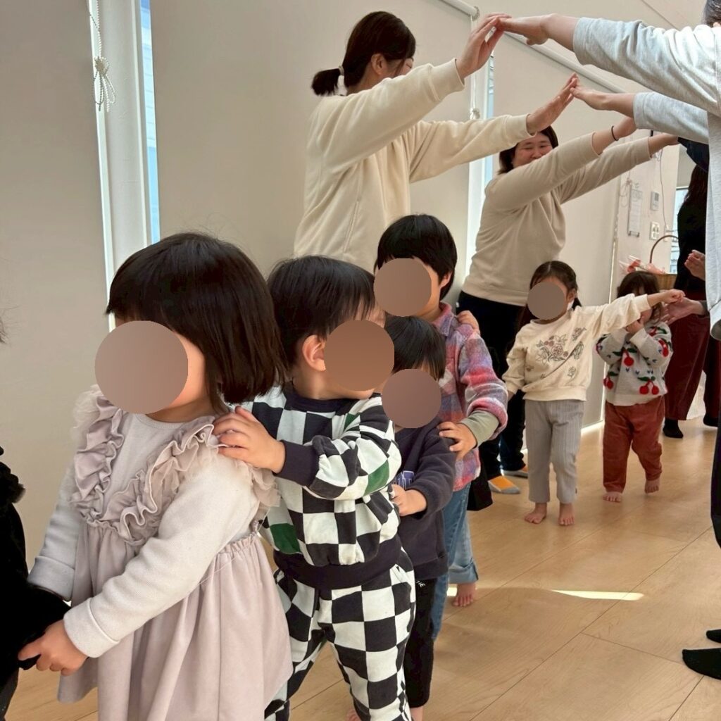 2歳児さんは、大好きなリズムあそびやうたあそびをお家の人に見てもらいました。