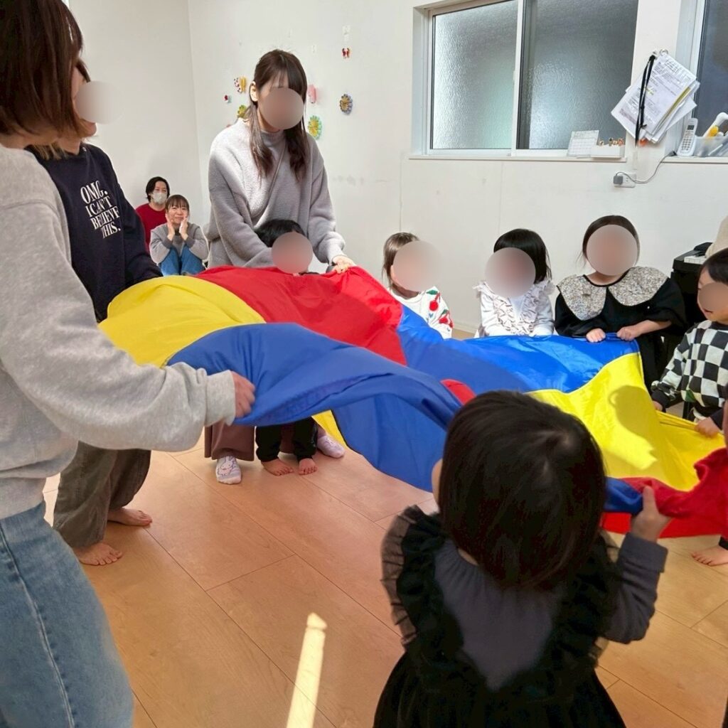 ”なべなべそこぬけ”や”パラバルーン”では、お家の人にも参加してもらい、一緒に楽しみました。